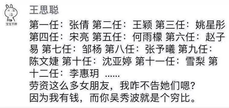 如果人生就是一场游戏,那么你我都是在新手村手持木剑的普通玩家,而王思聪则是1级就穿上万龙甲,手持屠龙刀的氪金玩家。从一开始,他就注定是这个服务器的顶级角色。