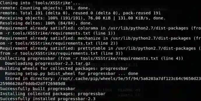 下面我再测试一个模块,XSStrike相信有很多人应该也会用到,就是各种xss扫描。初次使用会直接下载安装此模块。