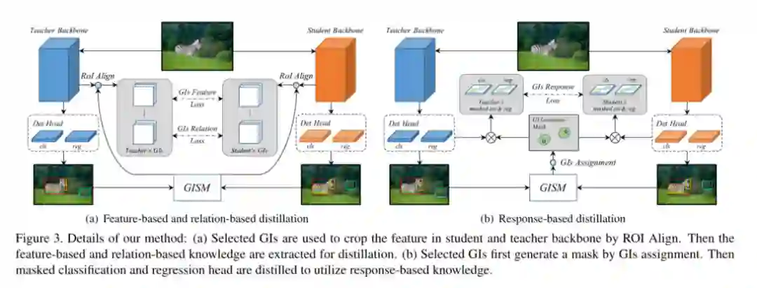 摘要:近年来,知识蒸馏已被证明是模型压缩的有效解决方案。这种方法可以使轻量级的学生模型获得从繁琐的教师模型中提取的知识。但是,先前的蒸馏检测方法对于不同的检测框架具有较弱的概括性,并且严重依赖ground truth (GT),而忽略了实例之间有价值的关系信息。因此,我们提出了一种新的基于区分性实例检测任务的蒸馏方法,该方法不考虑GT区分出的正例或负例,这称为一般实例蒸馏(GID)。我们的方法包含一个通用实例选择模块(GISM),以充分利用基于特征的,基于关系的和基于响应的知识进行蒸馏。广泛的结果表明,在各种检测框架下,学生模型可显着提高AP的表现,甚至优于教师模型。具体来说,在Reconet上使用ResNet-50的RetinaNet在COCO数据集上具有GID的mAP达到了39.1%,比基线的36.2%超出了2.9%,甚至比具有38.1%的AP的基于ResNet-101的教师模型更好。
