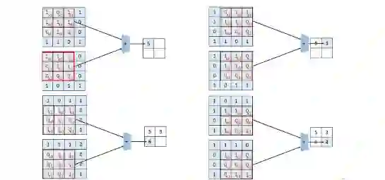 答案是,卷积核其实就是神经元。前面说神经元就是一次函数,那其实是神经元最基本的形式,实际应用中这种相乘和相加关系大多是用矩阵来表示的,比如卷积核和被处理矩阵每个对应位置的相乘都是一个一次函数(这里做了些简化,忽略了相加),整体上表示为矩阵的相乘和相加,也就是前文中说的GPU最擅长的事情。而一堆卷积核的“互动”和其后的一些处理过程,就构成了神经网络。