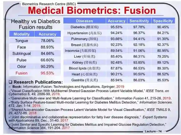 – “DetectingDiabetesMellitusandNonproliferativeDiabeticRetinopathyUsing Tongue Color, Texture, and Geometry Features”, IEEE Trans. on Biom. Eng. 2, 61, 491-501, 2014. (舌像应用)