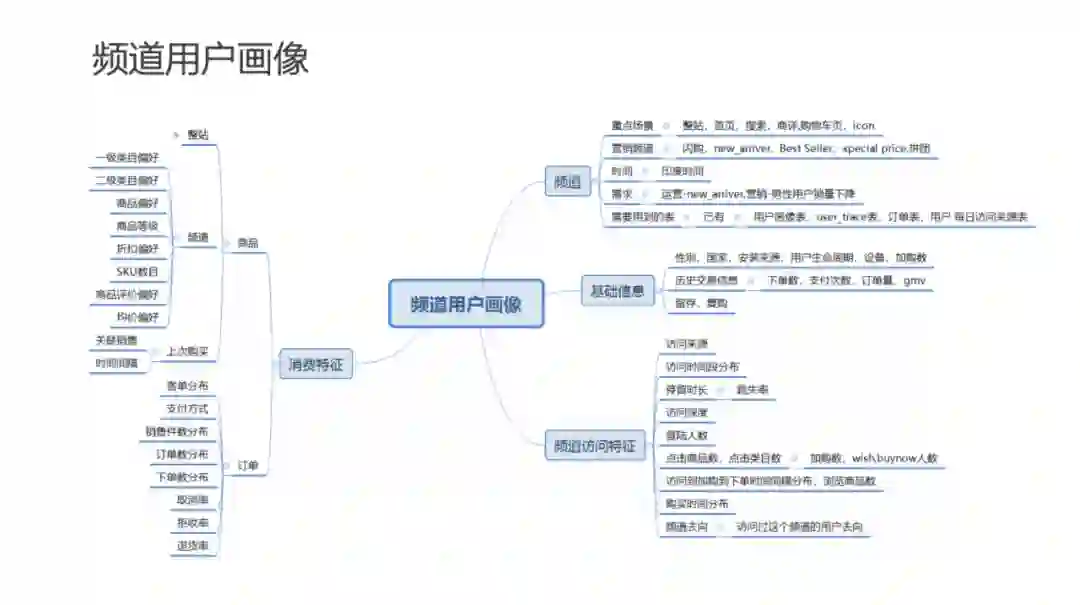 举个例子来说,你是抢购秒杀频道的运营负责人,你通过类似的上述分析,找到了秒杀频道和全站的用户画像差异点,那有什么用呢?比如我们发现秒杀频道女性用户或者大龄女性用户,相对于全站占比高很多,然后我们通过全站分析出这类用户喜欢购买的品类是A、B、C;但是频道内我们发现几乎没有A、B、C这些品类的商品,或者A、B、C这些类目的价格段高了很多,甚至是大量的男性商品。那我们马上就找到了一个优化点,是否可以在该场景做一些品类和商品的调整进行一些测试,可能就会在测试中找到明显的提升。