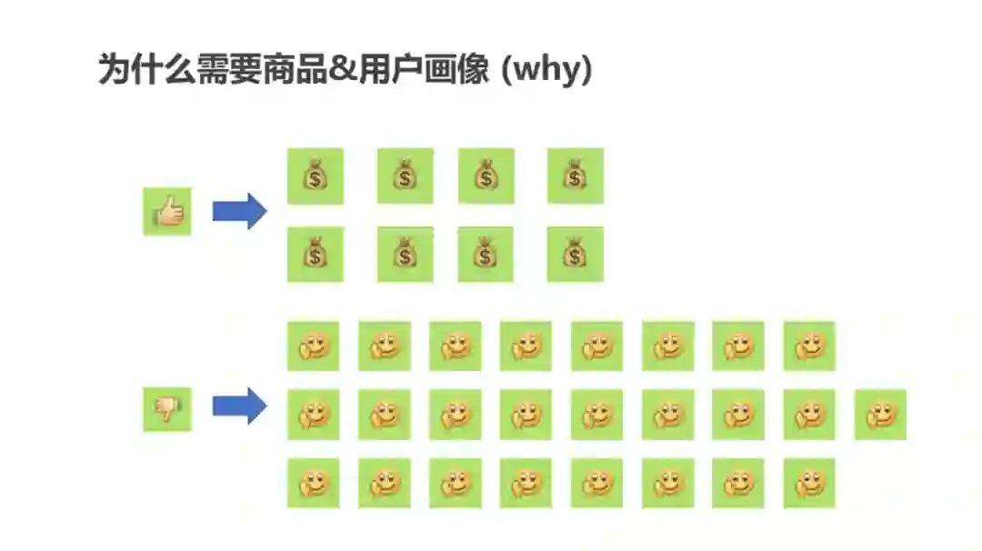 其实商品和用户画像有很多交集和互相交互的,比如商品有个标签是适用人群,比如女性或者男性,可能就是有很多女性用户经常购买,或者说用户经常购买某个品类或者某种颜色的商品,那用户就可以贴上类似的标签。商品有了标签,运营在做活动的时候,就可以根据活动首页和分会场人群定位,去选品、氛围塑造,比如时尚会场的商品池选取,比如对于履约不好(拒收、退货、低评分)的、高点击&低转化商品的控制。
