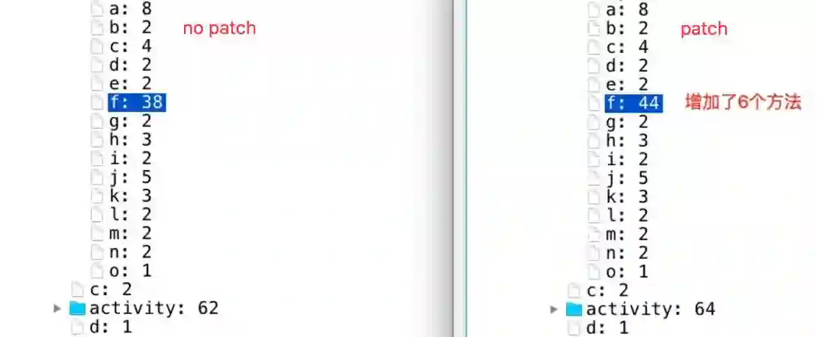 居然不能打出包来了!从原理上分析,除了引入的patch过程aar外,我们这套实现是不会增加别的方法的,而且引入的那个aar的方法才100个左右,怎么会造成美团的mainDex超过65536呢?进一步分析,我们一共处理7万多个函数,导致最后方法数总共增加7661个。这是为什么呢?