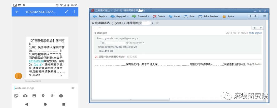 图2 被申请人将收到的通知内容样例