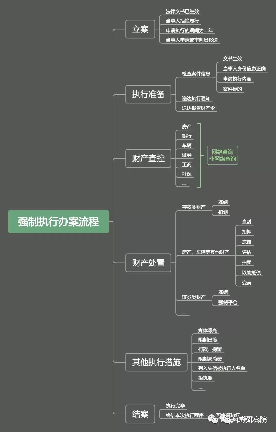 申请人拿到裁决书后,就可以委托律师事务所到各地法院申请执行。法院立案后,就会对被申请人的财产进行处置,包括房产、车、银行存款、社保等。财产处置简单而言就是法院对被申请人名下资产以冻结、扣划、拍卖等方式进行还款(详见图3强制执行办案流程图)。
