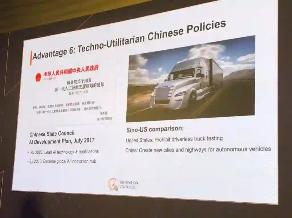 李开复指出,类似的政府支持对于人工智能有两点重要意义。其一是中国政府对“大众创新和大众创业”给予了大力支持。这在中国各地促成了大量创新园区和孵化园,北京中关村便是一例。这同时也推动大量资金流入政府扶持的风险投资基金。
