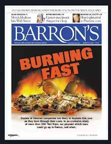 美国商业周刊《Barron》是第一个做这件事的机构。2000 年 3 月,Barron 提出了 Burn Rate 概念,它们列了一张表,上面是顶级 .com 公司还需要多长时间才能烧光钱。