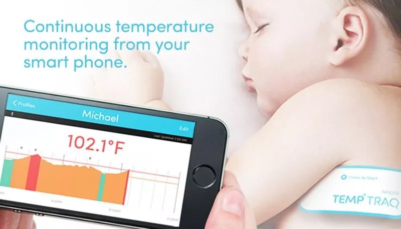 美国电子元件设计公司Blue Spark Technologies推出了贴片式智能温度计TempTraq,可以持续感知、记录孩子的体温变化,并向父母实时发出警示信息。