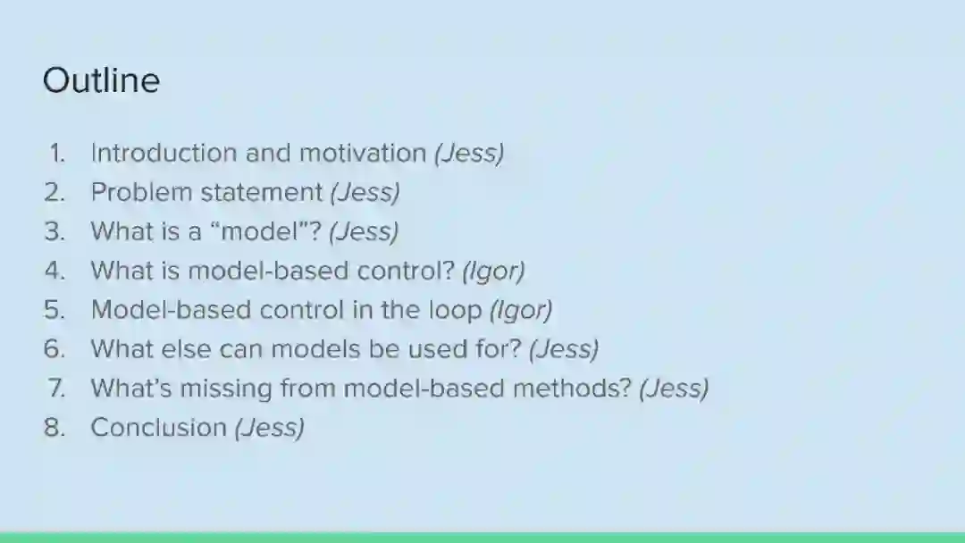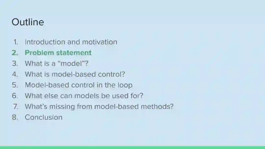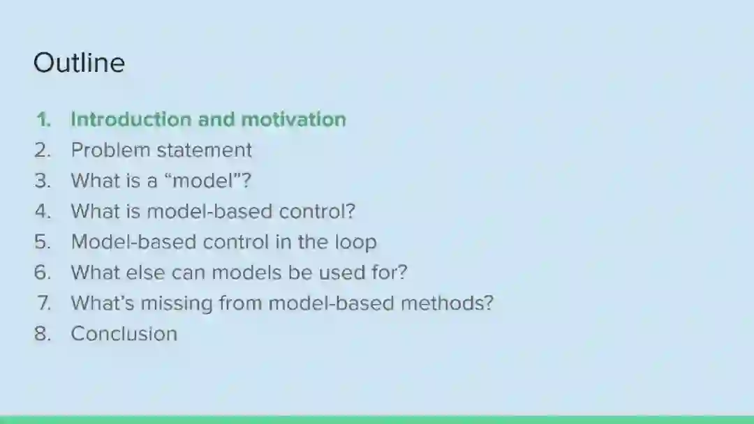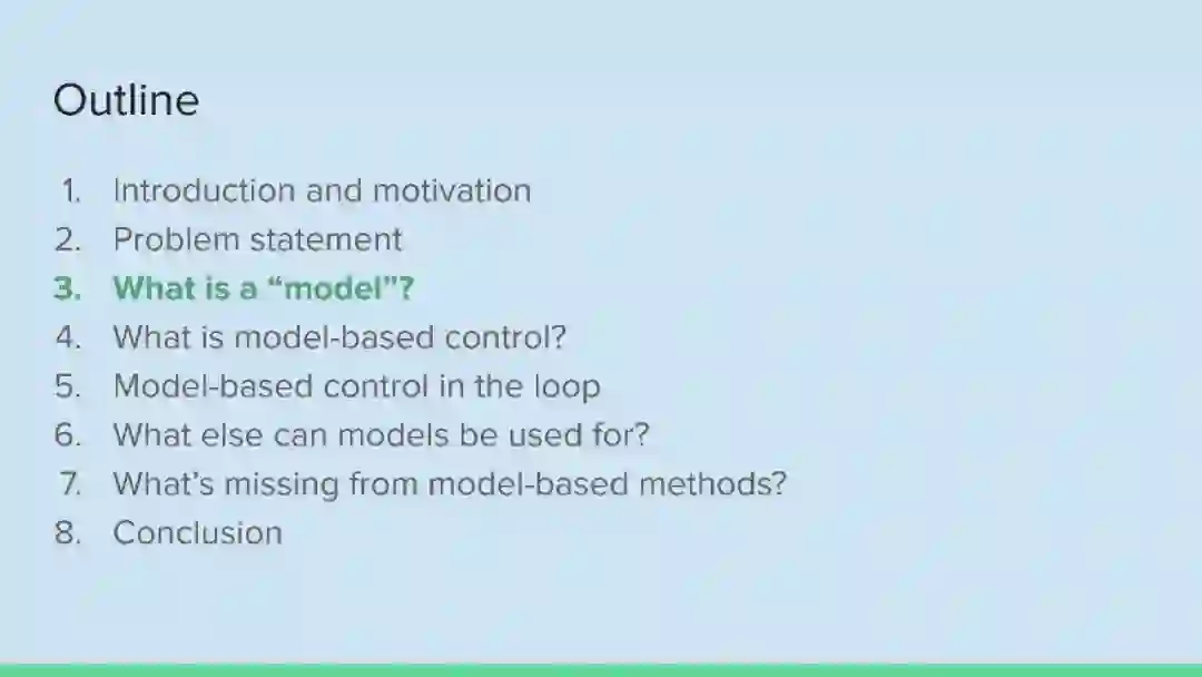 近年来,强化学习领域取得了令人印象深刻的成果,但主要集中在无模型方法上。然而,社区认识到纯无模型方法的局限性,从高样本复杂性、需要对不安全的结果进行抽样,到稳定性和再现性问题。相比之下,尽管基于模型的方法在机器人、工程、认知和神经科学等领域具有很大的影响力,但在机器学习社区中,这些方法的开发还不够充分(但发展迅速)。它们提供了一系列独特的优势和挑战,以及互补的数学工具。本教程的目的是使基于模型的方法更被机器学习社区所认可和接受。鉴于最近基于模型的规划的成功应用,如AlphaGo,我们认为对这一主题的全面理解是非常及时的需求。在教程结束时,观众应该获得: