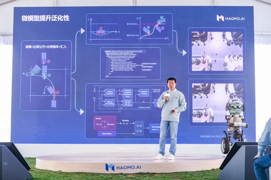 处理这样的场景,过去自动驾驶算法需要写非常多的规则式场景判定和参数,代码难以调试。当规则越来越多的时候,就会引发逻辑爆炸,导致规则失效。毫末则使用机器学习模型来替换手写规则和参数,获得更广泛的适用性。