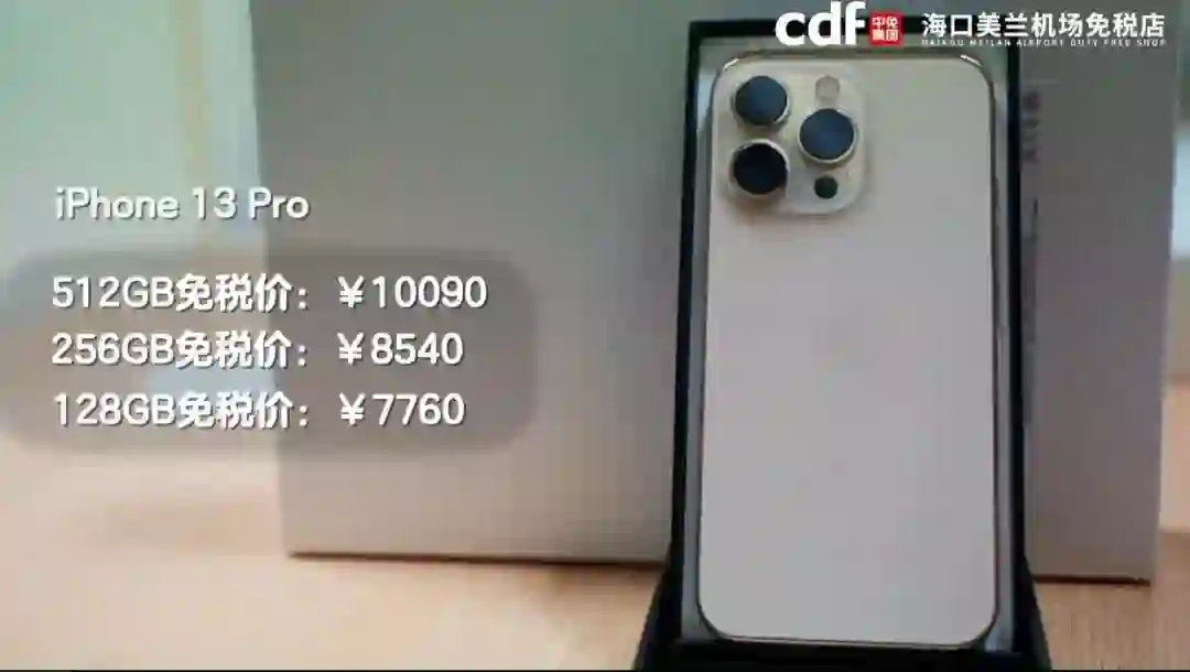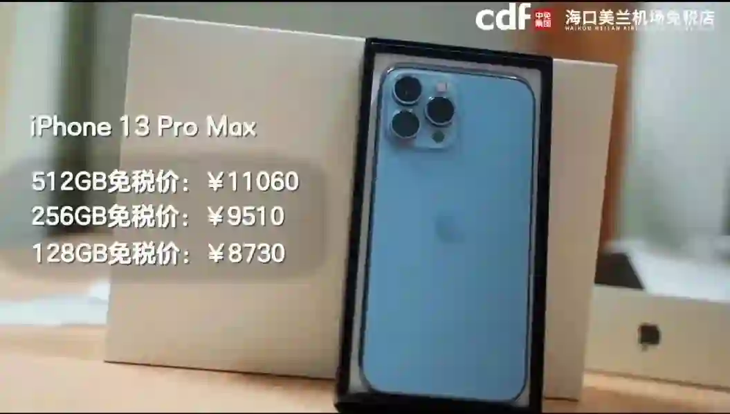 从“cdf 海口美兰机场免税店”官方微信公号发布的视频来看,iPhone 13 系列免税版价格比官方价格最多便宜近 400 元,最低价格 5045 元,目前部分型号已经断货,店员称后期会不会调价不清楚。