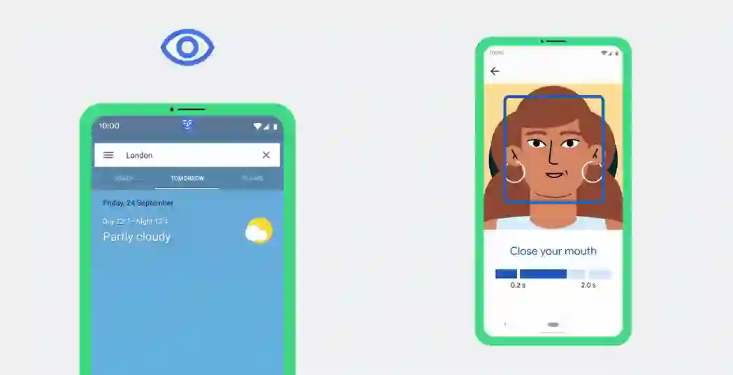 受运动和语言障碍人士启发,谷歌推出了 Camera Switches、Project Activate 应用,前者可以将前置摄像头变成开关,替代键鼠或者触摸屏等,后者可以使用面部表情和眼球运动来出发预设的动作,例如说出短语、播放音频、发送短信等。