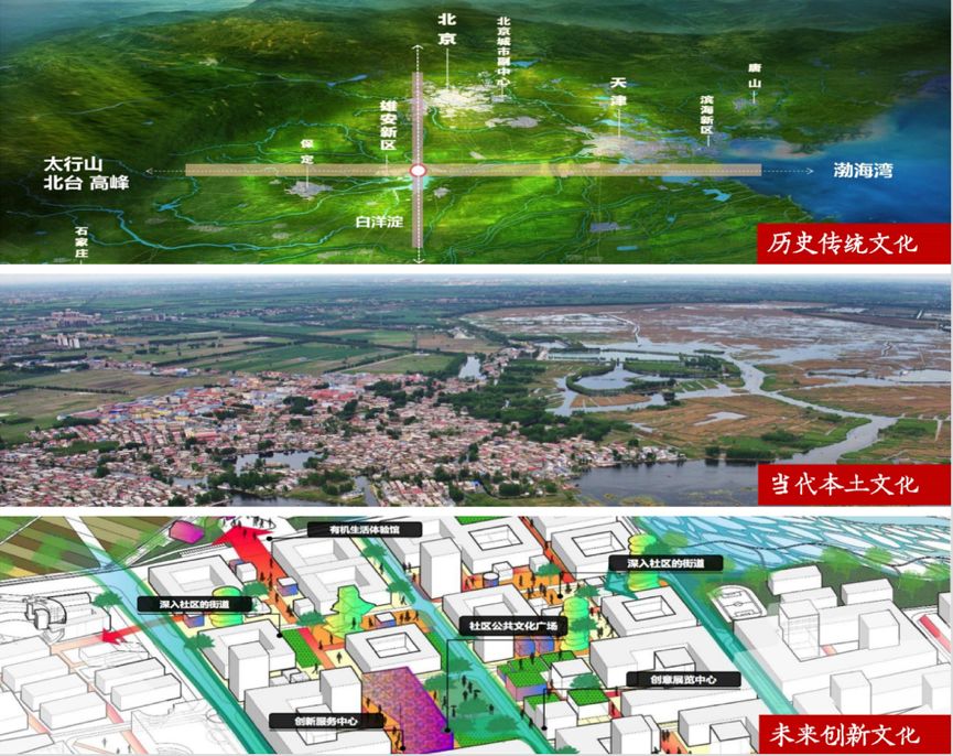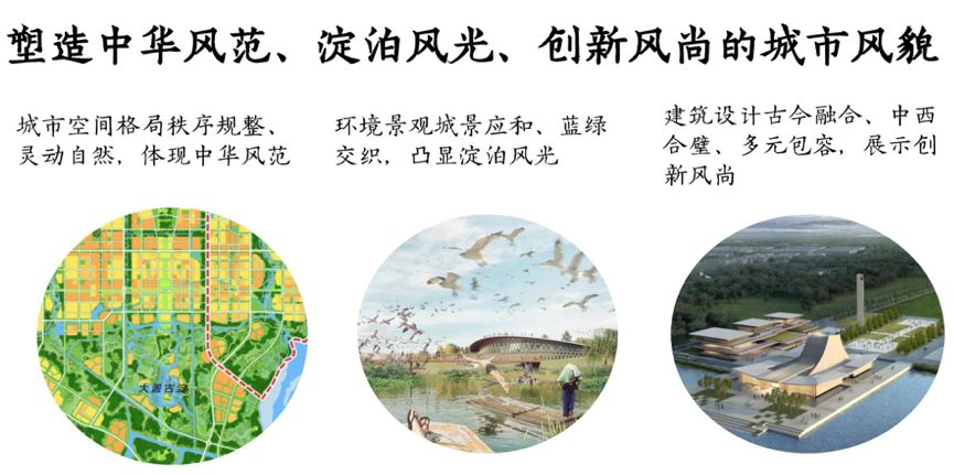 城市风貌应该体现民族文化、地域特点、时代精神。基于此,雄安提出的风貌指引是中华风范、淀泊风光、创新风尚。