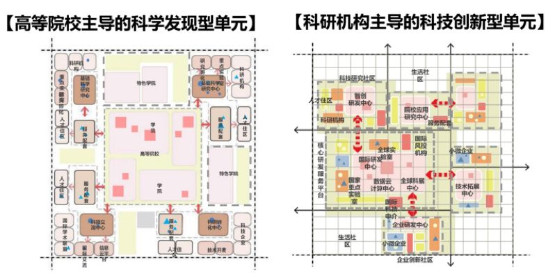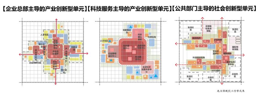 不同的创新创业群体,其行为特征和空间组织模式也有差异。根据承接对象,分类组织创新型社区,如高等院校主导的科学发现型单元,科研机构主导的科技创新型单元,企业总部主导的产业创新型单元,科技服务主导的创新型单元,公共部门主导的社会创新型单元。