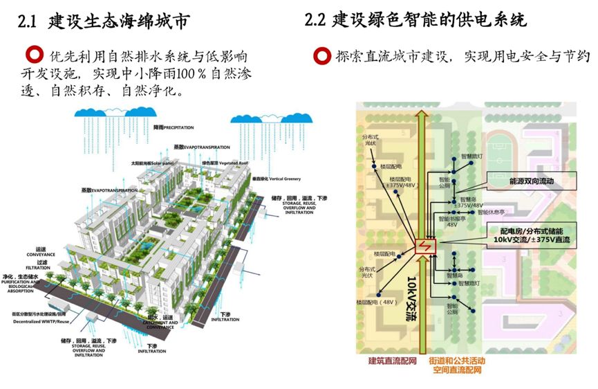 其次是绿色基础设施。包括生态海绵城市、绿色智能的供电系统。局部尝试探索直流配网,实现用电安全与节约。