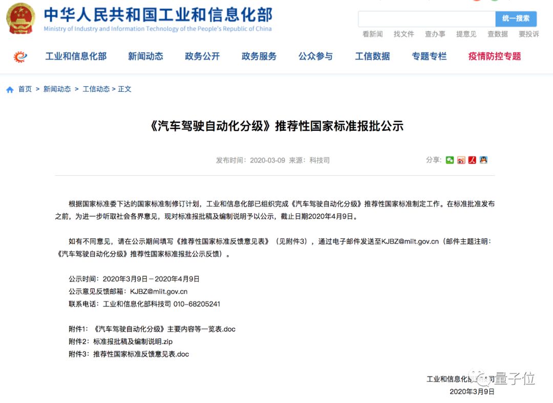 在工信部的网站上,公示了《汽车驾驶自动化分级》推荐性国家标准,总共分成0~5一共六个级别,和美国SAE版差不多。