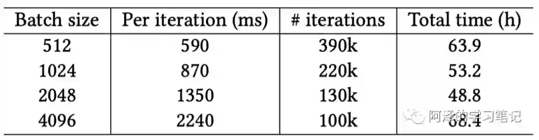 「多 GPU 训练」:为了能够在单台机器上充分利用多个 GPU 进行训练,作者以多塔(Mulit-tower)的方式训练前向和反向传播。对于多个 GPU,首先将每个 mini-batch (模型架构图的底部)划分为相等大小,每个 GPU 将负责一部分 mini-batch,并使用相同的参数来进行计算。在反向传播时,汇聚所有 GPU 上每个参数的梯度然后执行同步的 SGD 运算。作者针对 Pinterest 的数据规模将 mini-batch 的大小设置为 512 到 4096 之间。此外,作者还参考了引用[2]中 Goyal等人的工作,从而确保批处理训练时能更快收敛,并有更好的泛化精度。