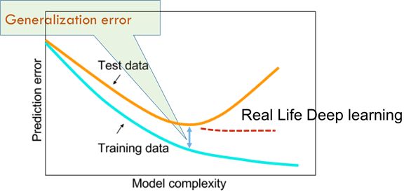 然后教程对深度学习领域的一些实际问题进行了讨论。比如,目前大部分深度神经网络的优化问题都是非凸的,有些问题甚至NP-hard,维度的诅咒(curse of dimensionality)会让问题尤其复杂。传统的机器学习认为模型越简单,参数越少,泛化(generalization)就会越好,否则会发生过拟合(overfitting)。但是,深度学习的实验发现,随着模型复杂度的增加,明显的过拟合并没有发生。而且,一些近期的研究发现,过参数化(overparameterization)反而会让优化变得容易,这种现象目前还没有得到理论上的解释。