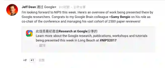 谷歌大脑的主管Jeff Dean说他相当期待本周的大会: