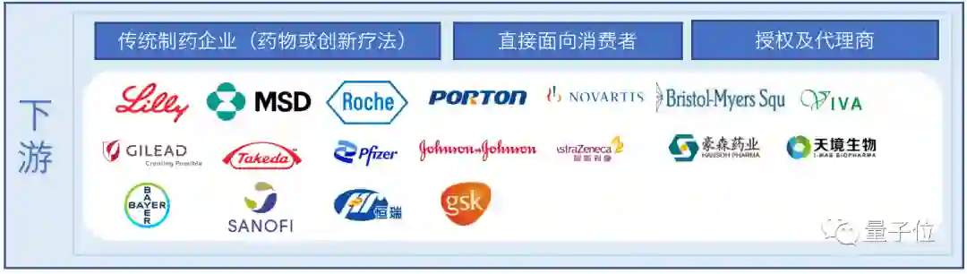 产业链下游,又分为直接面对消费者、传统药厂以及授权代理商三种方式。