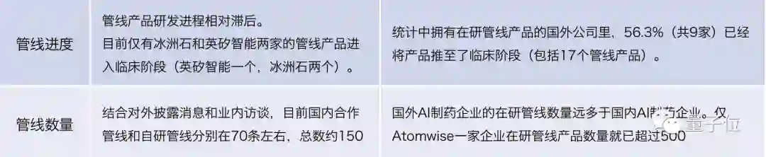 此外,国内外AI制药企业在业务范围、在研管线及数量进度上也均有差异。