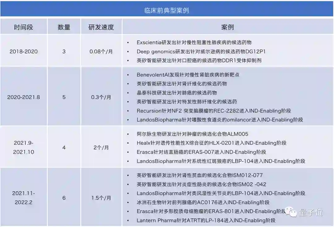 从代表案例来看,AI制药取得的节点性突破,已从平均每月0.08个快速上升至每月1.5个。