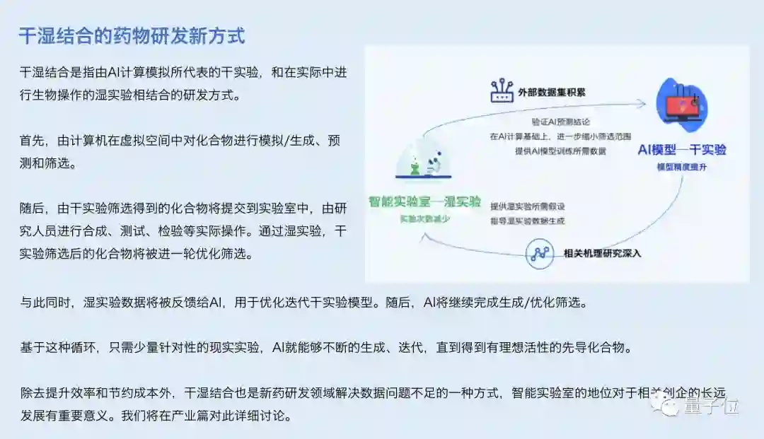 据量子位智库预测,干湿结合的药物研发新方式将成为重大趋势,大幅减少传统制药模式下随机或高通量筛选的投入。