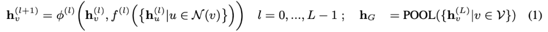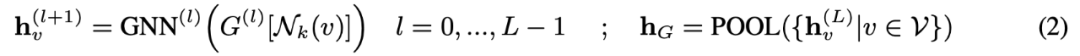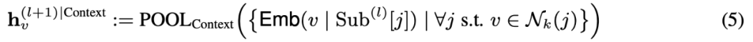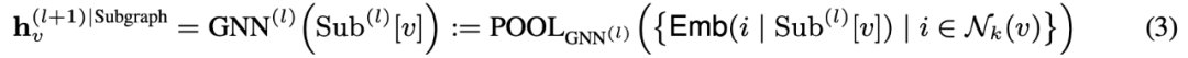 通过 GNN 计算结点 v 的 subgraph 中各节点 i 的 embedding,通过 POOL 函数得出整个子图的表示作为结点 v 的表示,成为 subgraph encoding。