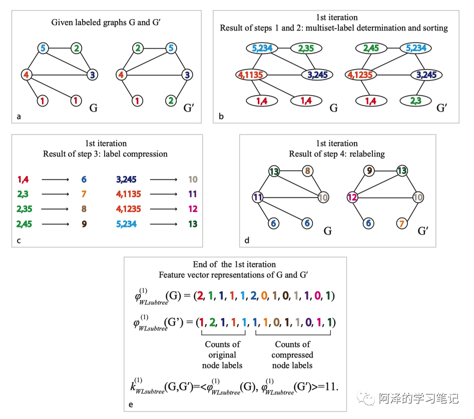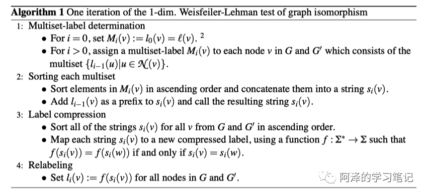 分别为:聚合邻居节点标签;多重集排序;标签压缩;更新标签。