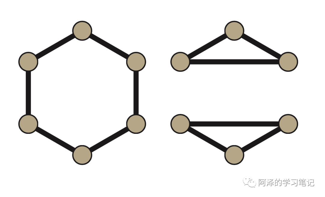在一维 WL-test 中,下面这两张图是非同构的,但是在二维 WL-test 中下面这两图是同构的。