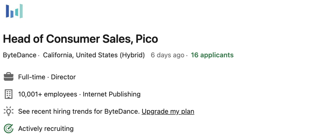 最近,字节还把一部分在美国的TikTok员工转到了Pico,以弥补Pico用人的问题。