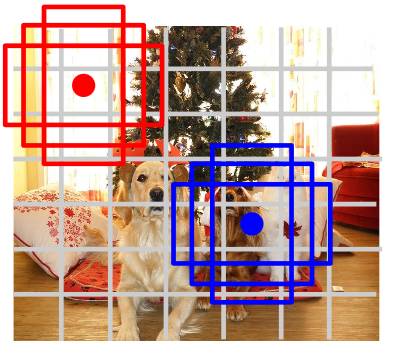 Yolo 是基于回归方法的深度学习目标检测算法,YOLO 将图像分成 SxS 个格子,每个格子负责检测落入该格子的物体。若某个物体的中心位置的坐标落入到某个格子,那么这个格子就负责检测出这个物体。如下图所示: