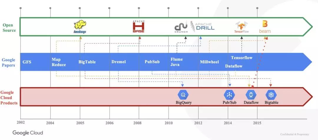 2012 年以前,如果想用 Google 大数据领域的技术,更多是阅读 Google 的论文,或者到 Apache 社区去下载这些开源的项目。2012 年 Google Cloud Platform 平台推出后,在 GCP 上就可以更便捷地使用这些数据服务。