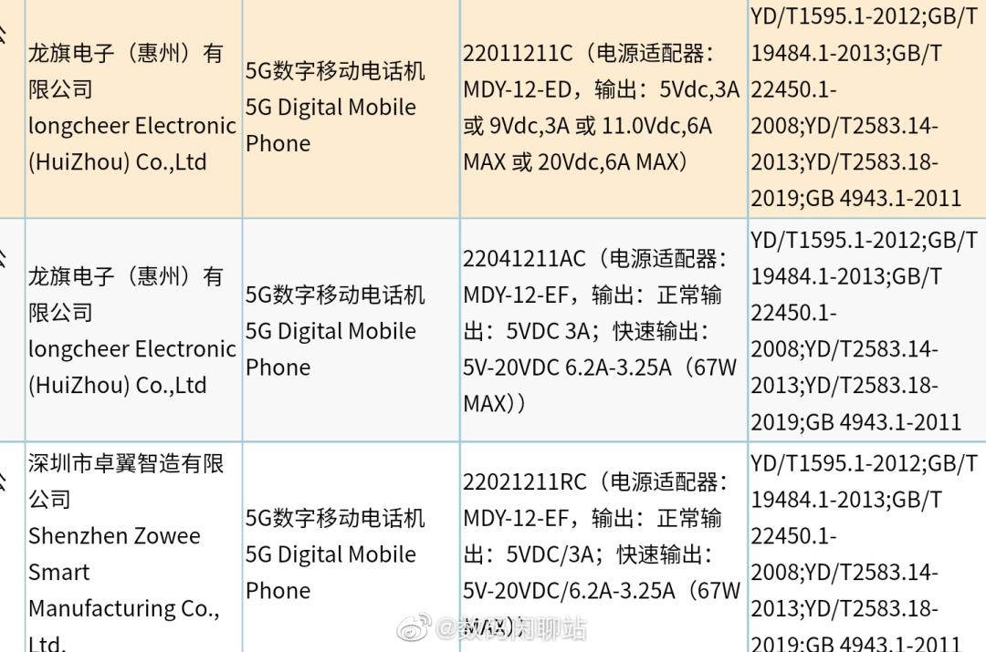 据 @数码闲聊站 今日爆料,Redmi K50 系列原机已经入网,型号分别为 22011211C、22041211AC、22021211RC,其中两款为 67W 超级闪充,而超大杯天玑 9000 版本为 120W 超级闪充。根据此前报道,Redmi K50 系列拥有 Redmi K50、Redmi K50 Pro、Redmi K50 Pro+ 三款机型,分别搭载骁龙 870、天玑 8000、天玑 9000 芯片。据悉,天玑 8000 是联发科的次旗舰芯片,定位仅次于天玑 9000,芯片基于台积电 5nm 工艺制程打造,由 4 颗 Cortex A78 大核和 4 颗 Cortex A55 小核组成,CPU 主频最高为 2.75GHz,GPU 为 Mali-G510 MC6。
