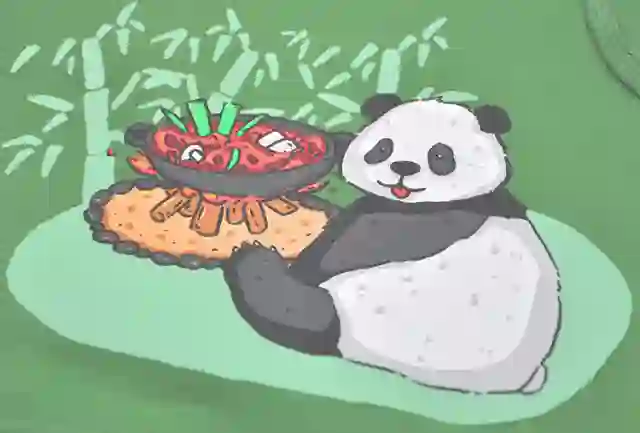 虽然食性转向了竹子,熊猫的消化系统仍保留肉食动物的特征,食物滞留和消化的时间很短,也不具有可以分解纤维素、木质素的酶。不过,熊猫并不是忧伤的胖子,它靠着一股蛮劲儿,进化出很多神奇的武器。既然食物营养差,不好分解吸收,那就高效地不停地省力地一直吃好了。