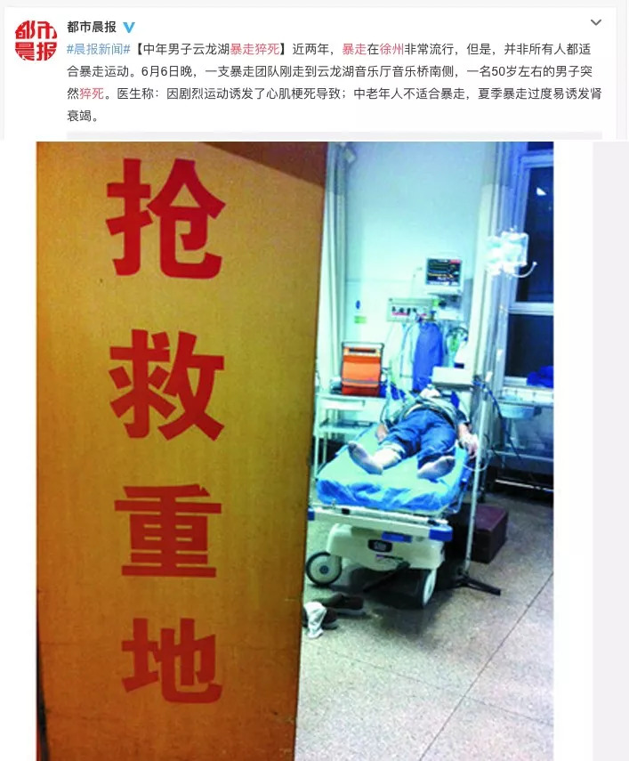 2014年某晚,徐州一支暴走团正在暴走,突然之间,团内一名50岁左右的男子,倒地不醒。