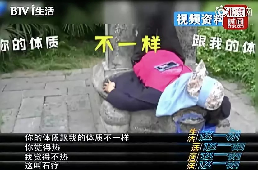 至于石疗的原理是啥,大妈也解释了:“我阳虚、虚寒,太阳晒过以后石头是热的,石头属于至阳之物,它身上有能量,我跟它接触以后,它的能量我能吸走。”听起来很玄虚。