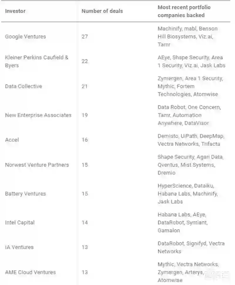 超过680个独立投资者为这些公司提供了资金,包括企业、风险投资公司和天使投资者。其中Google母公司Alphabet旗下的Google Ventures投资数量最多,达到了12笔。