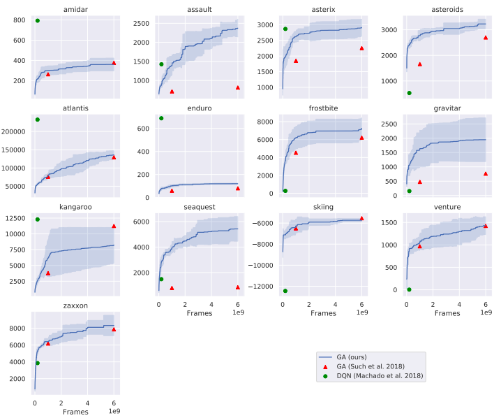 结果表明,与其他强化学习技术相比,该方法的数据效率不高,总共需要60亿个游戏框架,但在Montezuma的Revenge and Pitfall等具有挑战性、探索性的游戏中失败了。