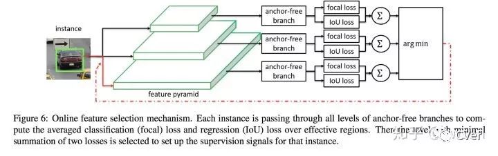 在经典的带有FPN的框架中,有这样一个隐藏操作在里面:选择一层合适的feature map负责检测物体。比如在two-stage里面,会有RoI pooling,将物体对应的feature抠出来送入不同分支完成分类和位置回归。Faster R-CNN用的是RoI pooling,Mask R-CNN用的是RoIAlign,这个地方改进是为了解决pooling操作带来的misalignment问题,但不是本文关注的重点。本文关注的是如何“合理”地选择feature来检测物体,并且针对的是single-stage这一类模型。但single-stage没有roi pooling这一操作,何来选择feature这一说呢?