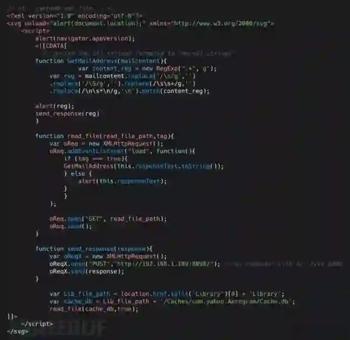 我测试的对象是 Yahoo! Mail iOS APP应用,也就是雅虎邮箱的iOS版本,在该APP应用程序的xml文件中存在一个存储型XSS漏洞。攻击者可以利用XML特性构造任意HTML/Javascript代码嵌入邮件,在该APP用户打开邮件时,都可以实现这种任意代码渲染呈现,极端点来说,利用XML的实体扩展攻击,可以形成DoS攻击,造成APP服务崩溃。