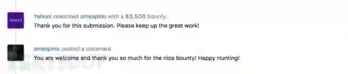 雅虎安全团队工作人员接收到该漏洞后,迅速进行了分类、修复和处置。