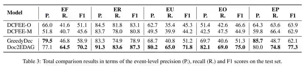 3)为 DEE 建立了一个大规模的现实世界数据集,它面临着事件论元分散和多事件的挑战,并进行广泛的实验证明了 Doc2EDAG 的优越性。
