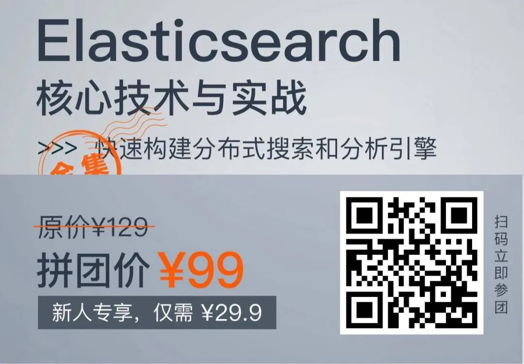 这门课之前就给你们推荐过,反响还挺不错的,说实话是我看过最好的 es 课了。eBay Pronto 平台技术负责人阮一鸣,基于 ES 最新 7.x 版本讲解,内容包括开发与运维,不仅局限于 ES,ELK 都有讲到,还覆盖了官方 Elastic 认证的所有考点,非常超值。现在已经有 20000 人订阅了,要想快速构建分布式搜索和分析引擎,选它没错。