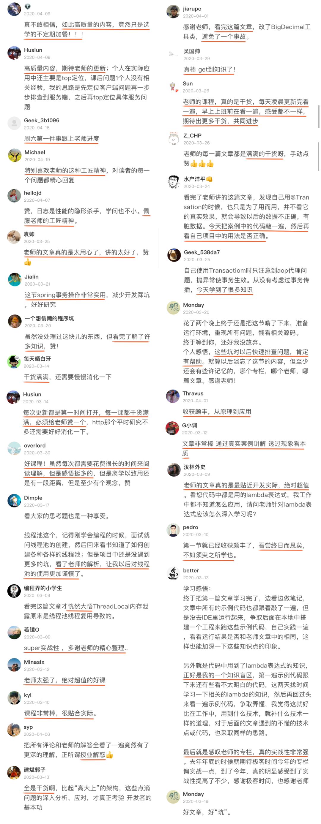 用正确的方法学习,才能事半功倍,当你遇到专栏内容之外的坑时,也能有清晰的解决思路。不吹不黑,我还给你们截了些读者的评价,供你参考: