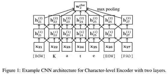 使用CNN进行字符级编码,虽然效果略逊于LSTM,但优点在于计算成本低。在两层CNN之间应用ReLU和dropout,在最后添加max-pooling层,得到character特征。