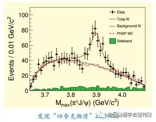 1990年以来,高能所依托北京正负电子对撞机(BEPC)、北京谱仪(BES)实验精确测量了τ轻子质量及R值,发现了X(1835)新粒子。2013年,北京谱仪Ⅲ实验发现了“四夸克物质” Zc(3900),是对传统夸克模型中物质只含2个或3个夸克的重大突破,在美国物理学会《物理》评出的当年度物理学领域11项重要成果中位列榜首。