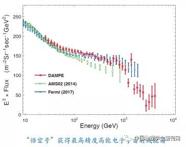 2015年12月17日,暗物质粒子探测卫星“悟空号”成功发射。这是迄今世界上观测能段范围最宽、能量分辨率最优的空间探测器,已成功获取国际上最高精度的电子宇宙射线能谱,并首次发现宇宙高能电子TeV拐点及其TeV以上的精细结构。