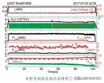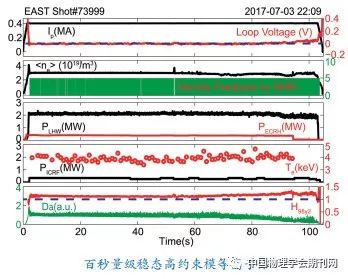 在核聚变领域,合肥研究院自主设计、建设、运行了世界上首台全超导非圆截面托卡马克核聚变实验装置(EAST,俗称“小太阳”),为世界稳态近堆芯聚变物理和工程研究搭建了重要实验平台。1998年7月立项,2000年10月开工,2007年3月通过验收。2017年7月3日,EAST获得超过100秒的完全非感应电流驱动(稳态)高约束模等离子体,成为世界首个实现稳态高约束模运行持续时间达到百秒量级的托卡马克核聚变实验装置,其科学研究成果为国际热核聚变实验反应堆(ITER)长脉冲高约束运行提供了实验支持,为我国下一代聚变装置——中国聚变工程实验堆(CFETR)的设计和预研奠定了基础。EAST的建设运行使我国托卡马克研究走向世界前沿,成为该领域国际上最重要的研究中心之一。获2007年度中国科学院杰出科技成就奖、2008年度国家科学技术进步奖一等奖、2013年度国家科学技术进步奖一等奖。